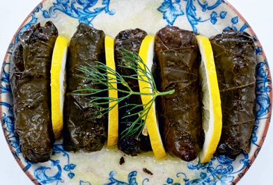 Виноградне листя, фаршироване та загорнуте в рисову начинку
