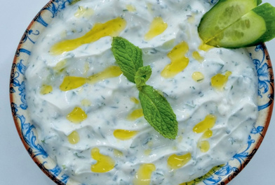 Солоний йогурт з огірками, кропом, свіжою м'ятою та часником