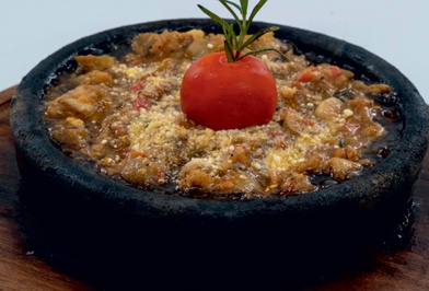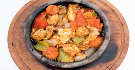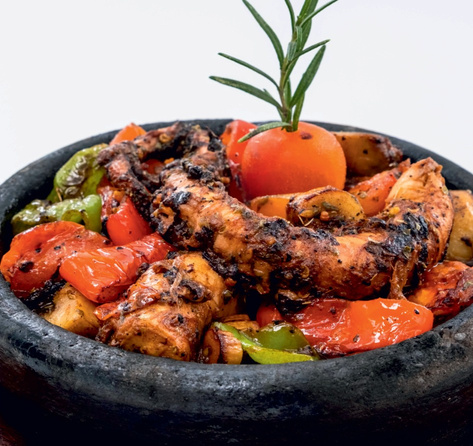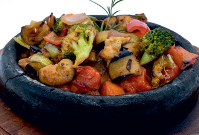 Chicken, lamb or beef, tomatoes, peppers, onions, garlic, mushrooms, eggplants cooked in claypot served with rice per person