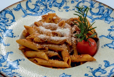 Пенне з овочами, томатним соусом та пармезаном зверху