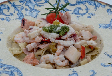 Феттучіні з мішаними морепродуктами та вершковим соусом