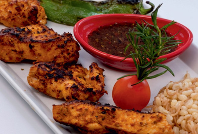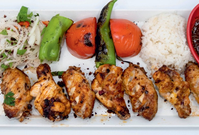 East Anatolian style marinated chicken pieces on the, skewer served with grilled tomatoes, peppers fresh onion with sumac, bulgur pilaf and our special kebab sauce