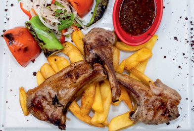 Marinated lamb chops served with grilled tomatoes, peppers fresh onion with sumac, french fries and our special kebab sauce