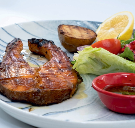 Served with fresh greens, onions, lemon, special sauce and boiled potatoes