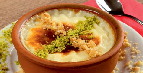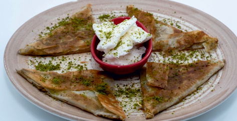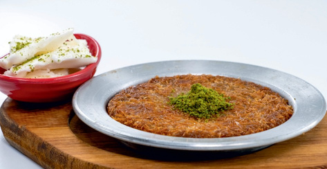 It is made with thin dough layers filled with clotted cream (kaymak), ground pistachios, and sugar, creating