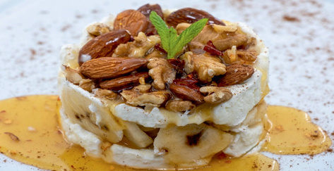 Its our special, made of fresh kaymak, ice cream, banana,almonds, walnuts and chili honey