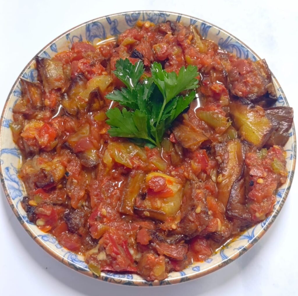 Шматочки баранини, приготовані з перцем, помідорами, цибулею та часником, подаються в запіканці